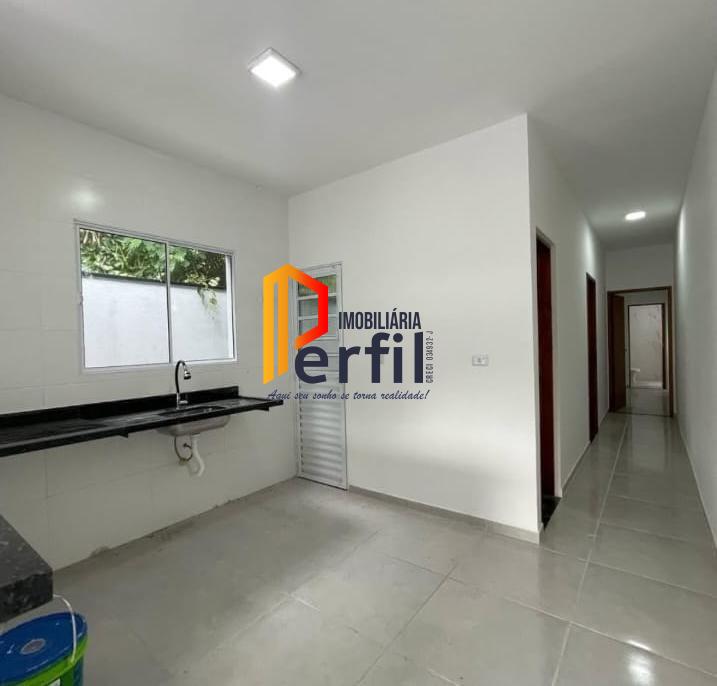 Com 2 dormitórios (1 suíte), banheiro, 2 vagas de garagem, sala, cozinha, área de serviço coberta e quintal.