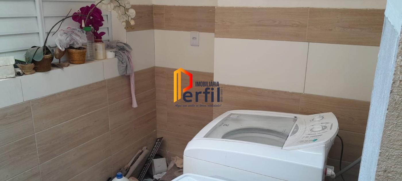 Com 2 dormitórios (1 suíte), banheiro, 2 vagas de garagem cobertas, sala para 2 ambientes, cozinha, área de serviço coberta e quintal com área gourmet coberta, com churrasqueira e pia.